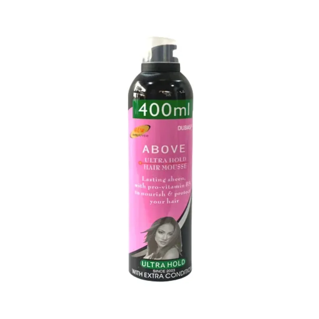 Above Ultra Hold Hair Mousse Extra Condition delivers strong, long-lasting hold while nourishing and conditioning your hair. Its rich, creamy mousse helps define styles, boost volume, and control frizz without stiffness or crunchiness. The extra conditioning elements help keep hair soft, manageable, and healthy-looking even as it holds your style in place.