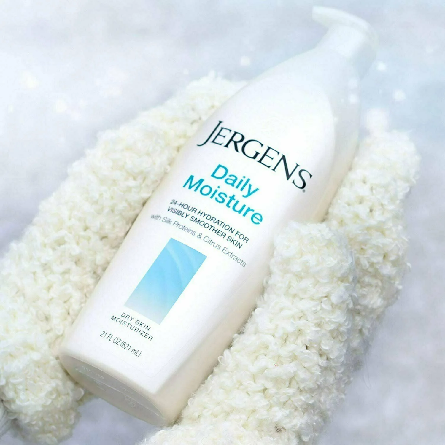 Jergens Daily Moisture Lotion 621ml is a lightweight, fast-absorbing moisturizer designed to provide all-day hydration and visibly smoother skin. Enriched with a blend of silk proteins and a hydrating complex, it deeply nourishes dry skin and improves texture from the first use. The clean, fresh scent and non-greasy feel make it perfect for everyday use on all skin types.